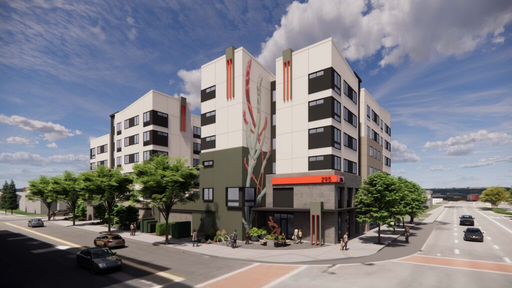 MidPen proposes to build a new affordable community in downtown Sunnyvale at 295 South Mathilda. The current design is a 6-story building with 122 units, including a range of one- two- and three-bedroom units. This 100% affordable community is located within an 11-minute walk from the Sunnyvale Caltrain Station and emphasizes transit-oriented living. Additionally, residents will have access to on-site property management, resident services as well as amenities such as a landscaped courtyard and children’s play area. Sustainability is a key feature, with solar photovoltaics and all-electric systems integrated into the design.